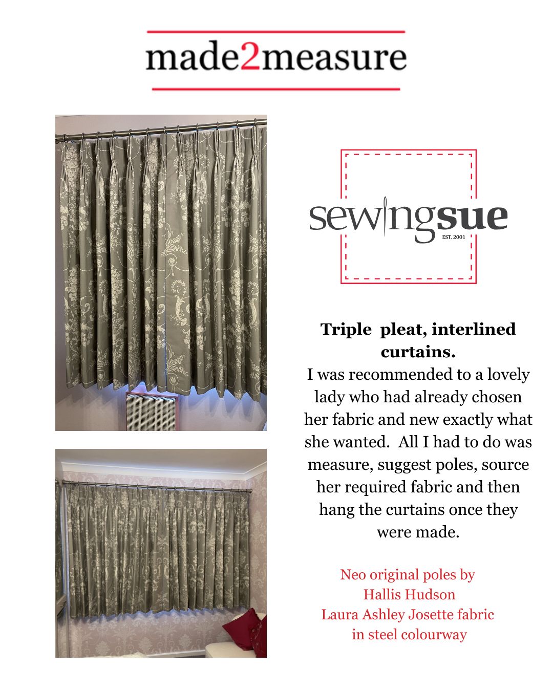 Care has been taken in making these curtains. When the hand stitching and pleating is done the work is not over. The curtains need to be pressed and dressed. Pressing the curtains and creating the pleat folds so they are ready to hang is a very satisfying part of the process in delivering beautiful curtains to your home. #sewingsuehemyock #devoncurtainmaker #williammorrisfabric #blackdownhillscurtainmaker #bespokecurtains